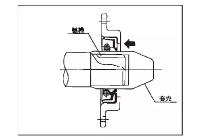 如軸上有鍵槽或花鍵時(shí),軸上一定要使用罩殼,特別是鍵槽的角比較鋒利,是造成損傷油封唇端部、漏油的原因。